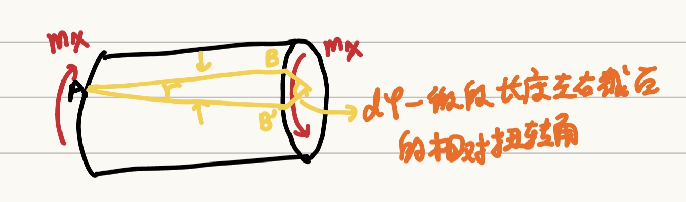 如图,考虑受扭的薄壁圆筒内任一点